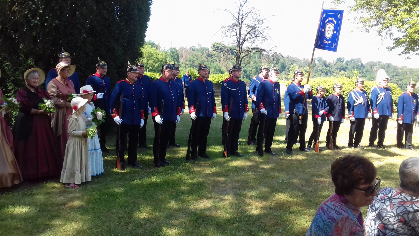 Nach Ende des Festhochamtes und der Prozession marschiert die Garde in den Pfarrgarten ein. Hier wird die Tagesparole ausgegeben und die diesjährige Schirmherrin, Bürgermeisterin Alicia Bokler, schreitet nach kurzer Ansprache die Ehrenformation ab.